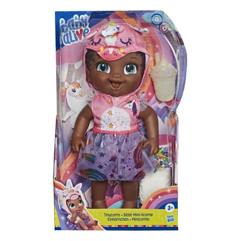 Conteúdo: 1 Boneca, 1 Vestido, 1 Mamadeira e 1 Fralda